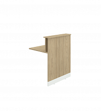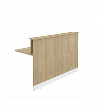 Для удобства посетителей с внешней стороны ресепшена предусмотрена установка лицевых панелей, обозначающих зону работы администратора. Ширина топа панели позволяет комфортно работать с документами, размещать журналы или рекламные материалы для посетителей.