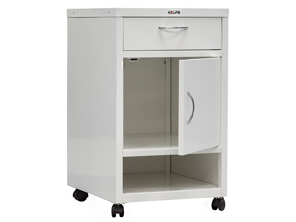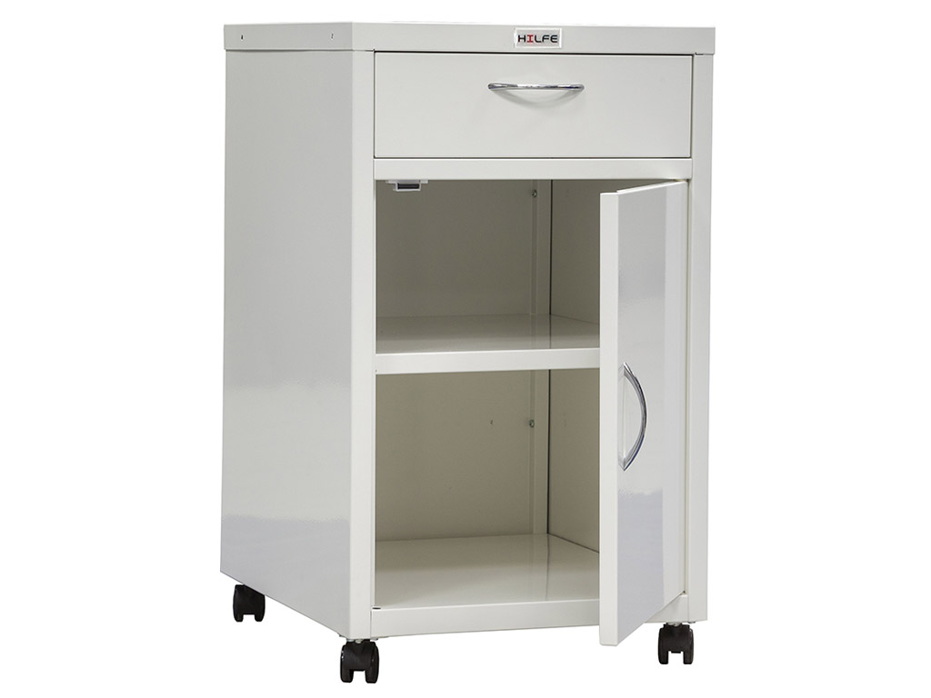 Поскольку подкатные тумбы часто используются в помещениях, где необходима регулярная уборка и дезинфекция, они легко передвигаются и транспортируются. Для этих целей модели оборудованы колесами (50мм). Прикроватные тумбы большую часть времени должны находиться в неподвижном положении, поэтому два передних колеса снабжены стопорами для надежной фиксации на месте.